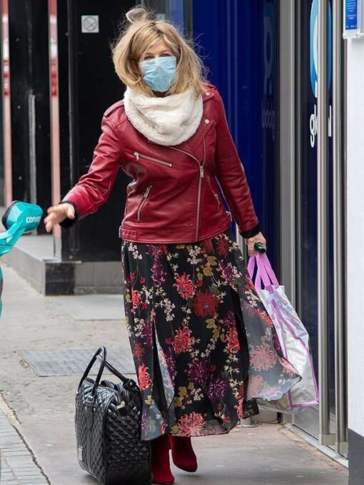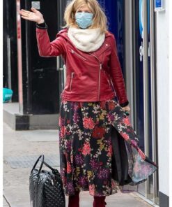 Global Studios London Kate Garraway Red Motorcycle Leather Jacket