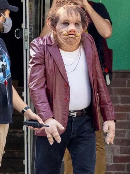 Pig Guardians of The Galaxy 3 Maroon Leather Blazer