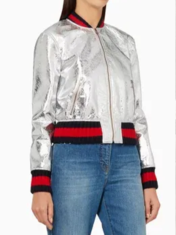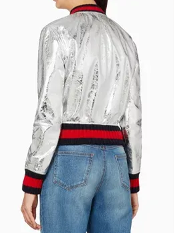 Upgrade Your Wardrobe with the Gucci Silver Metallic Leather Bomber Jacket