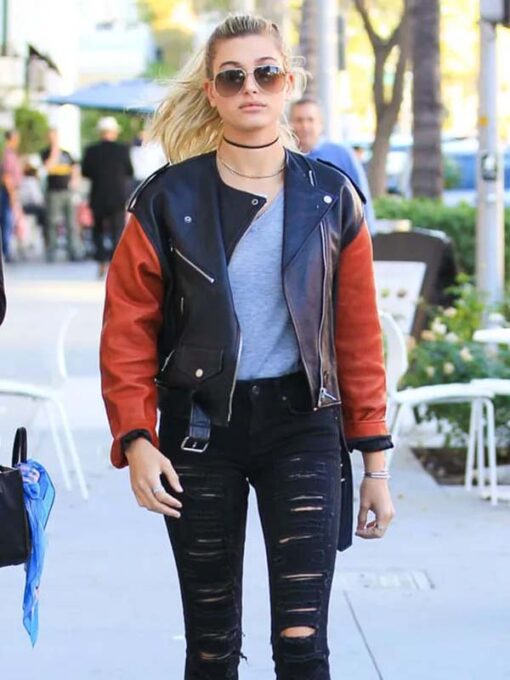 Hailey Rhode Bieber Black and Orange Jacket