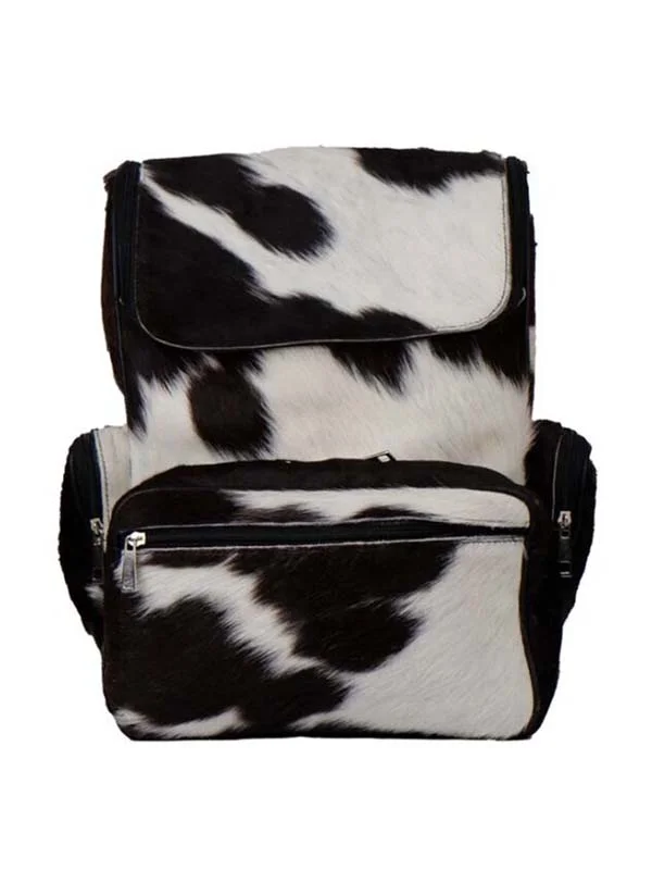 Rucksack Multiple Pockets Cowhide Black And White Backpack