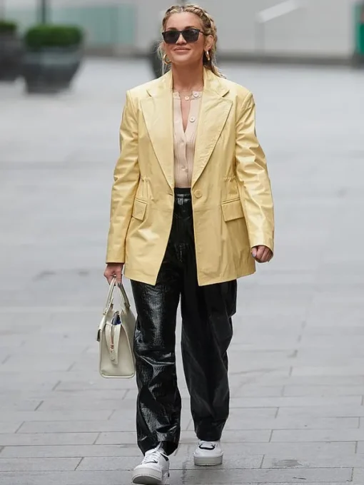 Heart FM London Ashley Roberts Beige Leather Coat