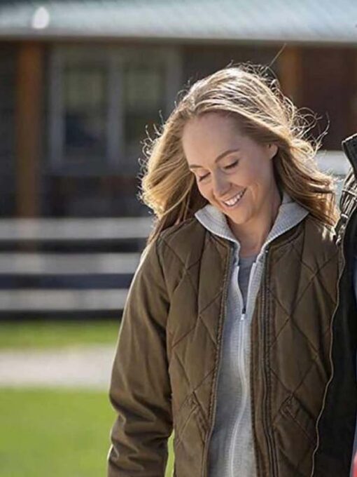 Amy Fleming Heartland Amber Marshall Brown Puffer Quilted Bomber Jacket