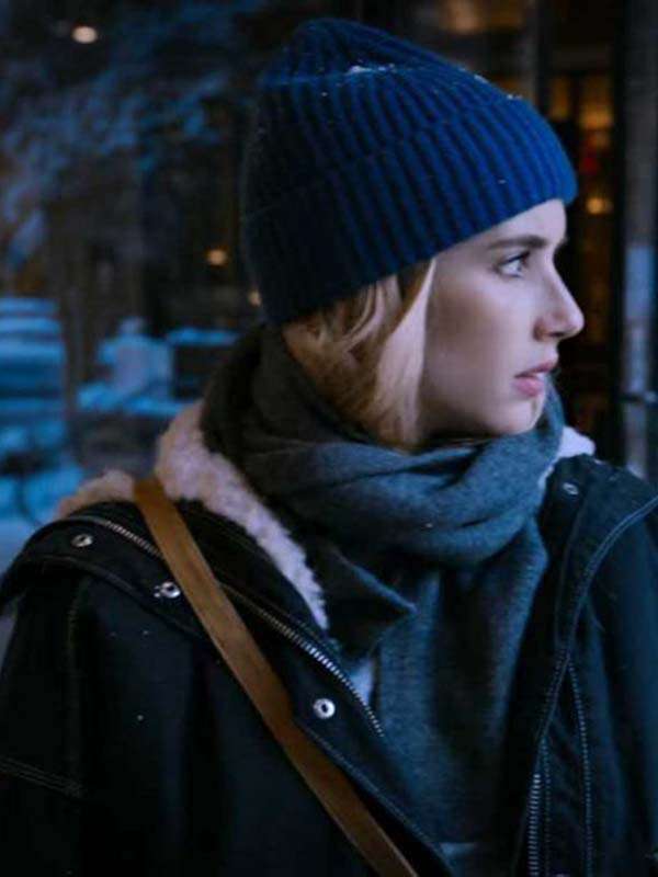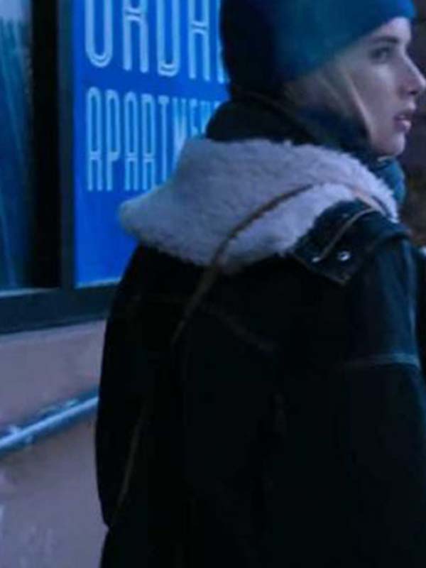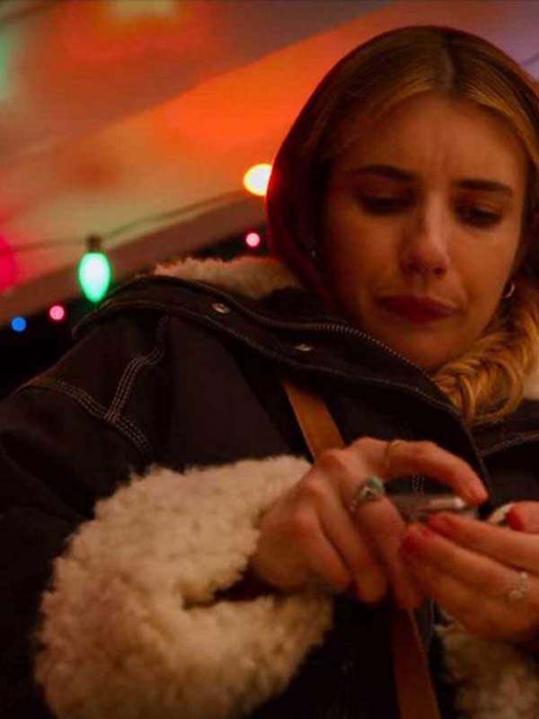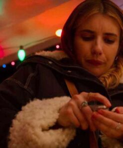 Sloane TV Series Holidate Emma Roberts Black Cotton Shearling Jacket