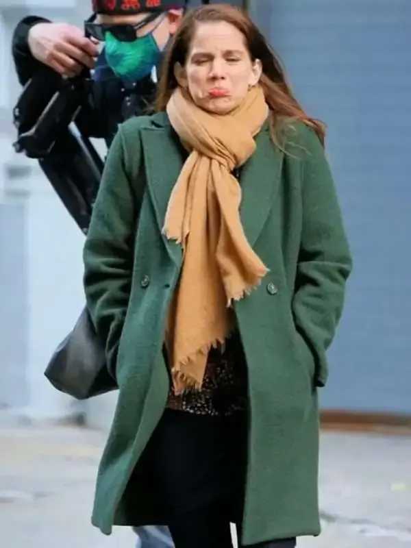 Anna Clumsky TV Series Inventing Anna 2022 Green Wool Coat has a splendid exterior of wool material with an inside finished with the lining of super cozy viscose fabric. Forest green color this coat comes with long-length sleeves, buttoned closure, and round cuffs.