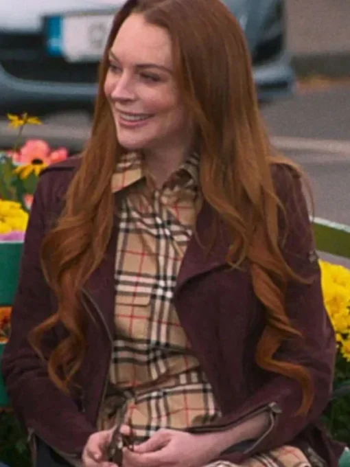 Lindsay Lohan Irish Wish Maroon Suede Leather Jacket