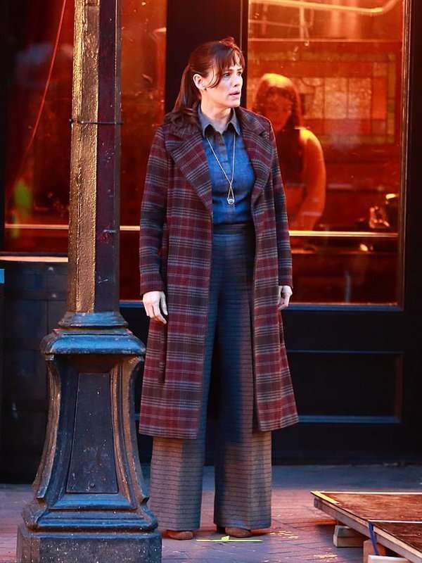 TV Series The Adam Project Jennifer Garner Brown & Red Long Coat