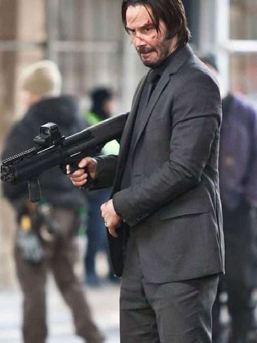 John Wick Keanu Reeves Grey Wool Blend Suit