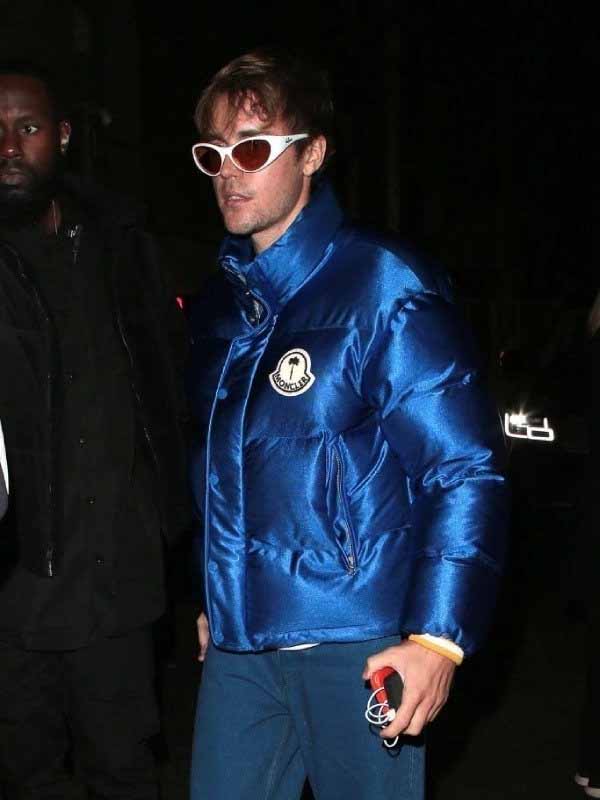 London Fashion Week 2023 Justin Bieber Blue Puffer Jacket