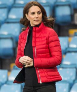 The Kate Middleton Red Quilted Puffer jacket is a voguish selection for casual but formal events. It is offered in a heavenly red tempting scheme. It is created from top-notch nylon material and has internal viscose comfy and secure lining. The inner lined with viscose fabric contributes a warm and comfortable appeal.
