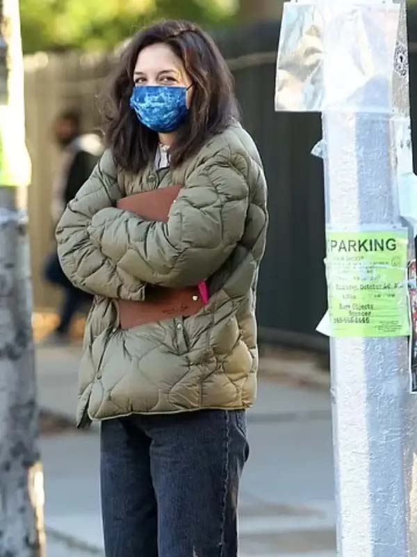 Rare Objects Katie Holmes Olive Green Diamond Quilted Jacket