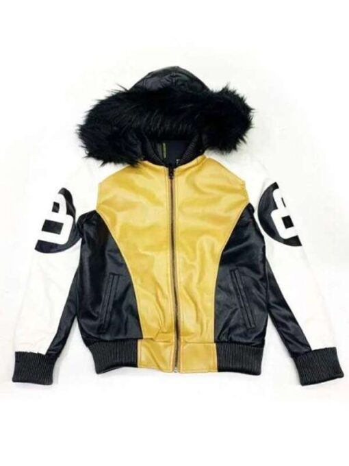 8 Ball Fur Hooded Khaki and White Leather Jacket have vintage look and comfortable features. It is made up of 100 % top-quality leather with another soft layer of viscose inside to boost your experience. It has a hooded collar or zipper front closure this jacket holds all the sleek features you are looking for. Khaki and white combination of the jacket and full-length sleeves with rib-knitted cuffs all together in one piece.