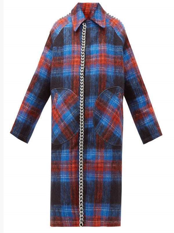 Moreover, the skillfully designed two hand-warmer wide pockets at the waist allow you to put your storage in them easily, and the long attached silver chain and blue & red check pattern add more poise to the coat. Place your orders right away and become the center of the eye!