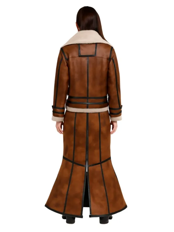 Made from top notch quality real leather, the Kim Kardashian Shearling Leather Coat shows finest level of luxury with unmatched charm of the fashion able look. The sophistication of the outfit is further enhances with the addition of the inner Vegan shearling lining. This lining adds an extra layer of warmth, provided coziness without negotiating on style.