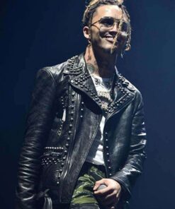 This Lil Pump Jacket is designed from pure leather along with inner viscose lining which holds maximum comfort and durability. It features a lapel-style collar giving out a fashionable and trendy appeal. While the YKK front zipper closure accommodates a modern-day look in it. It has full sleeves with zippered cuffs. Further specifications of studs on its front, collar, and sleeves giving an added charm to it and make it more fascinating appeal. The black color adds a classic and edgy look. You can also keep your storage in the two side waist pockets and two zippered chest pockets.