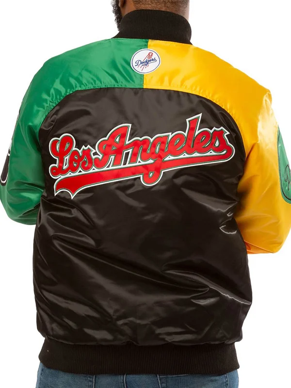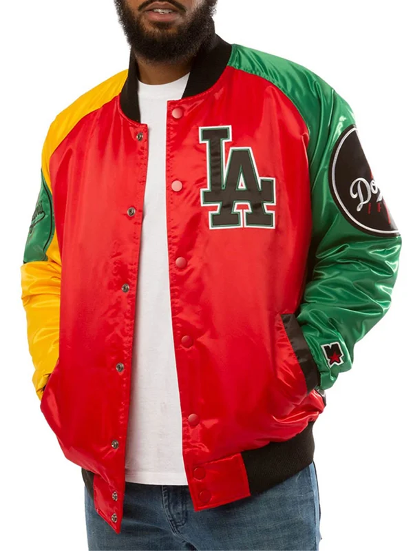 Inspired by the dynamic energy of the city of Los Angeles and the vibrant spirit of its baseball team, Los Angeles Dodgers Jacket stands out as a true representation of modern style and athletic prowess. Its unique combination of red, green, yellow, and black color in patches creates a visually stunning contrast that commands attention wherever you go.