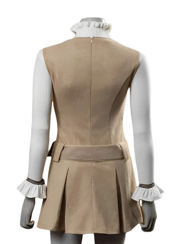 The frock is made from a high-quality cotton blend. This offers a texture of softness but will keep its shape perfectly, making sure to maintain the old doll look. A Peter Pan collar with a rounded shape gives the creepy appearance, highlighting the innocent touch as shown on the screen. This M3GAN cosplay outfit comes in a pleated front that is similar to the same as shown by the doll in the movie. The long sleeves are made with cuffed endings, while the front closure in the invisible back zipper closure adds ease of fit with a seamless look. It’s a standout piece from the Women’s Outerwear collection, combining comfort, style, and eerie perfection.