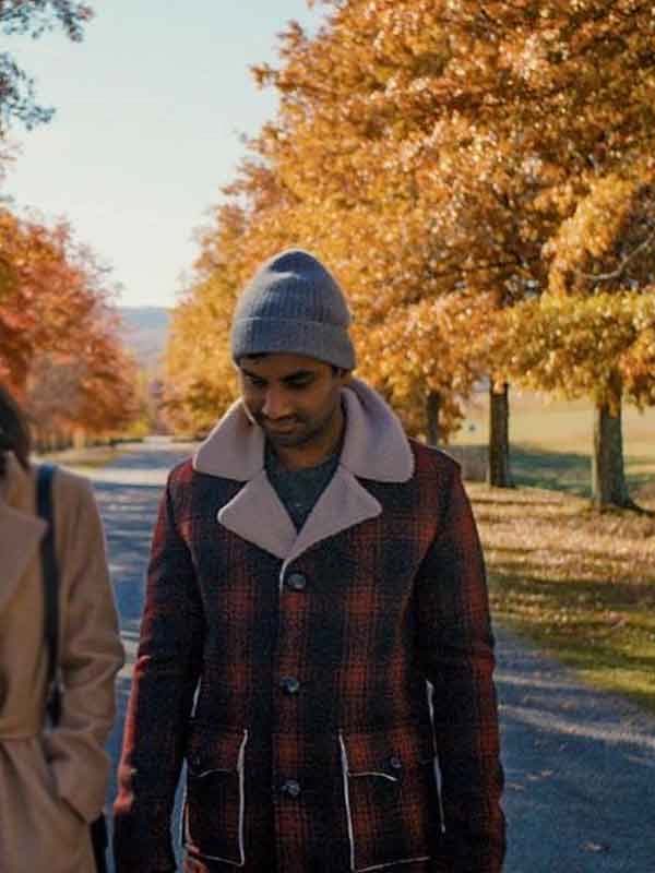 Aziz Ansari Master of None Dev Shah Plaid Shearling Collar Jacket