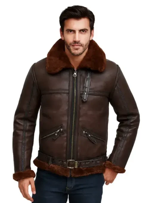 Aviator Brown shearling leather jacket is another jacket that you would like to add in your collection. The Bomber Aviator Men brown leather jacket is prepared with excellent quality pure leather and inner is made of soft and comfortable real shearling lining that give you cozy feeling.