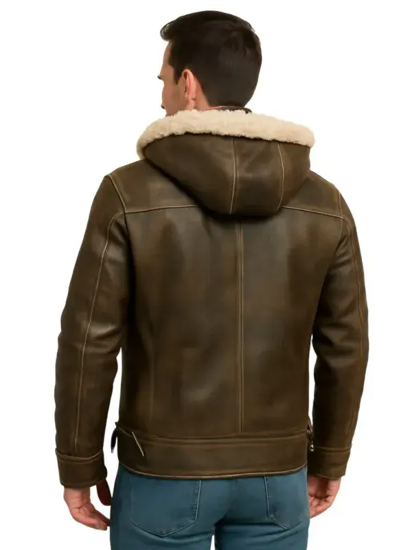 This jacket gives more comfort in cold weather. It has a unique style with extraordinary features like 100% real sheepskin leather with fur, open hem cuffs, detached hood metallic zip closure side tabs with buckle distressed brown color, sheepskin real leather two chest, and two waist pockets.