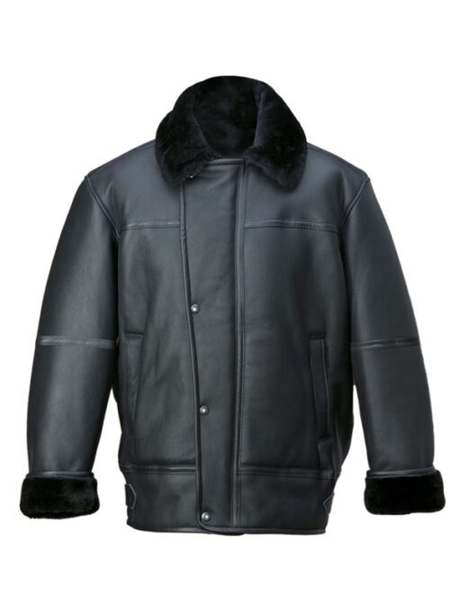 This men’s Black Aircraft Leather Shearling Jacket is genuine 100% full Leather material, On the Outside of the jacket it is a beautiful leather finish, and on the inside, there is Vegan and real shearling lining to provide a supple finish. The jacket has full-length sleeves along with shearling cuffs and two hands warmer outside pockets, it also has a zipper over buttoned closure for fitting adjustments, and All Seams have been exclusively reinforced to give heavy coverage.