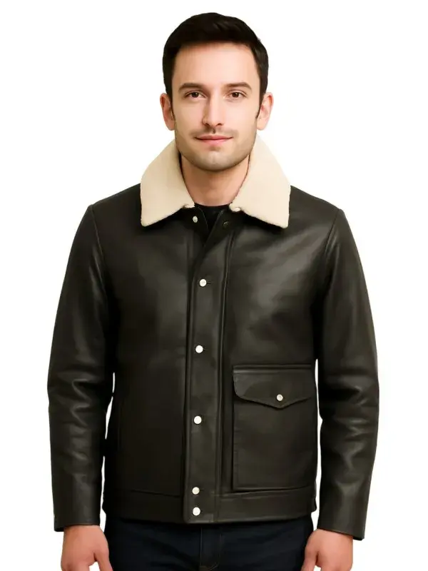 The high-performance jacket that helps to give the utmost warmth to WWII fighters at 30,000 feet has been gently updated. This Men Black Button Shearling Jacket is the true personification of a shearling leather jacket
