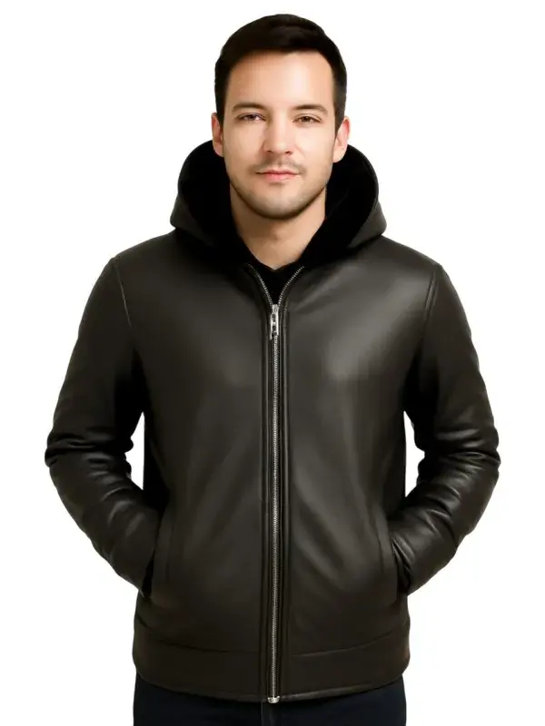 Let’s have a look at its amazing details, fabricated out of genuine leather material from the outer layer and inner smooth fur or shearling lining to provide a breathable and comfortable feeling. Get cover your head with its hoodie collar while going anywhere. It also has a zipper front fastening, full-length sleeves open hem cuffs, and inside-outside pockets to keep extra space for your storage. Its appealing pure black color allows you to pair it with any outwear. Never stand in second place by leaving this amazing item! Come on guys and get this hoodie!