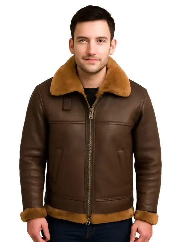 Men Brown RAF Pilot Shearling Leather Jacket