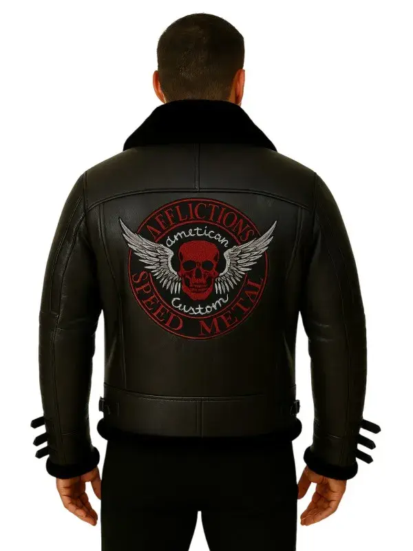 Men Black Shearling Biker Leather Jacket