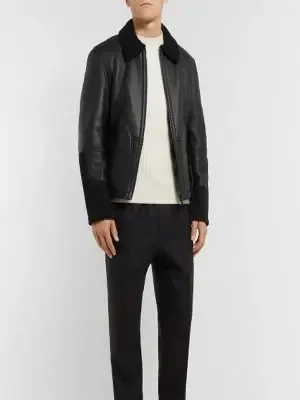 Men Black Sheepskin Leather Jacket