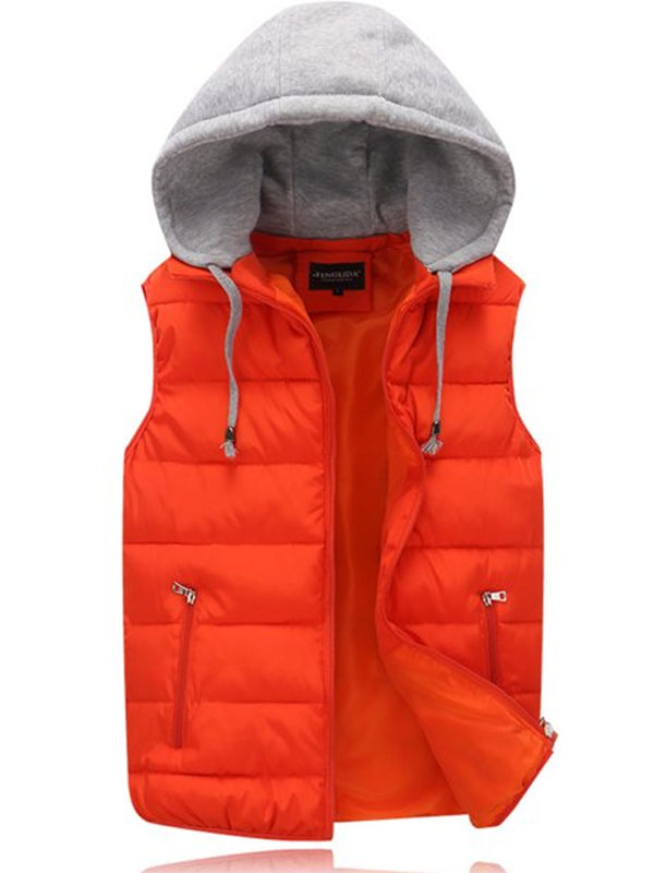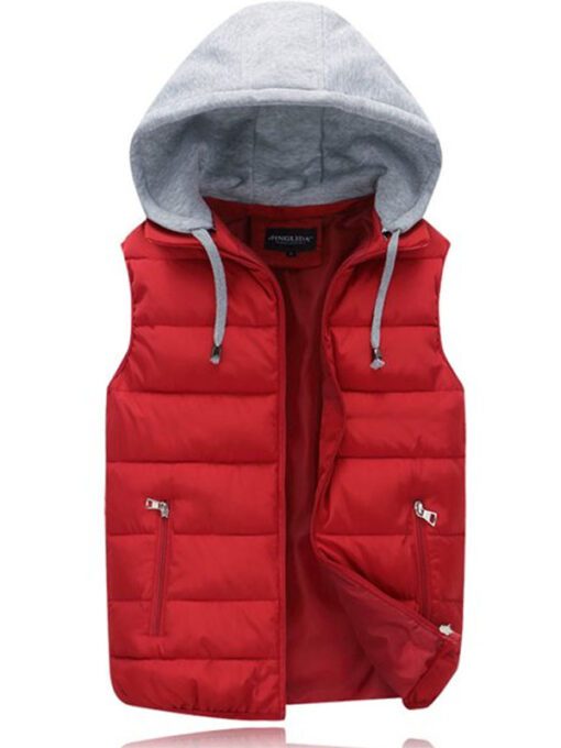 Look stand out by carrying this full zip hooded vest and become the center of an eye. Remind to hold its fascinating attributes such as a hooded collar, two waist pockets, and various color features. The most highlighting aspect of this outwear is the double function of closure, button, and zipper. Its adjustable hoodie drawstring permits you to adjust in order your head size and provides more protection for outgoings in chilled weather.