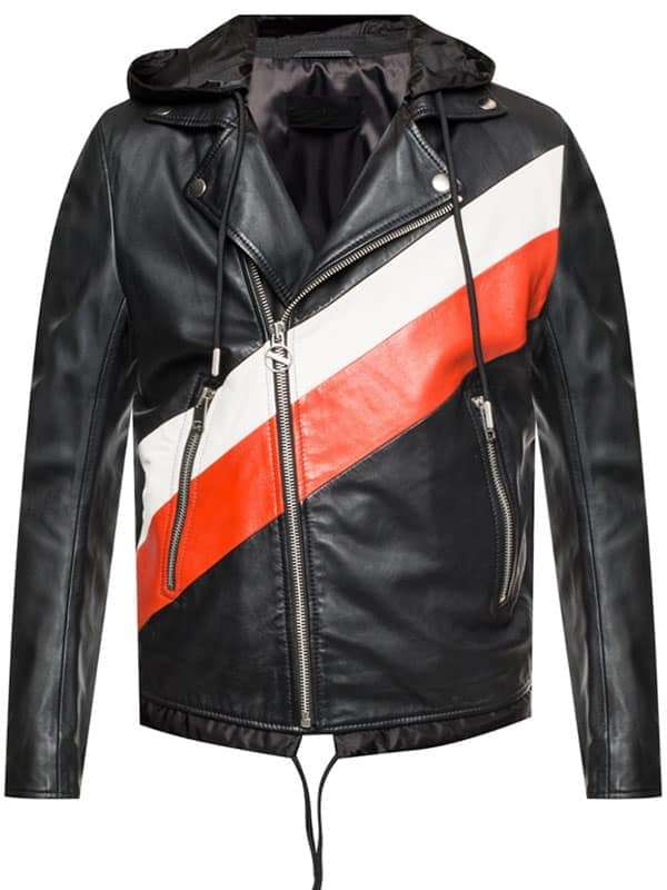 Black Leather With Color Stripe Biker Jacket