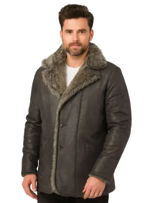 Vegan Fur Black Leather Shearling Coat For Men