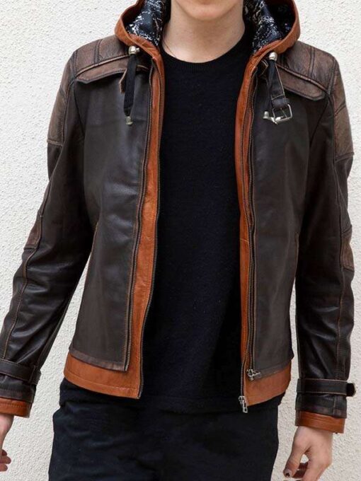 Mens Brown Hood Leather Jacket