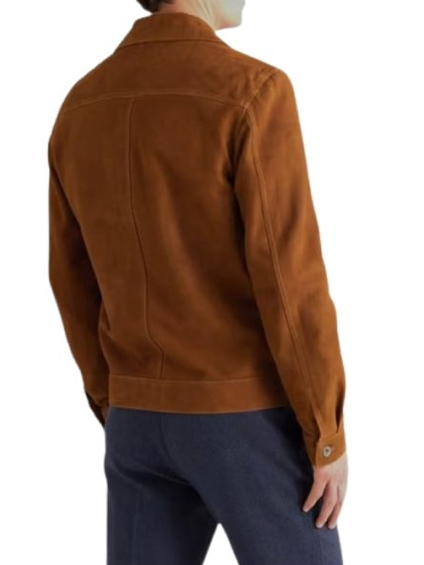 Brown Suede Sheep Skin Leather Trucker Jacket for Mens