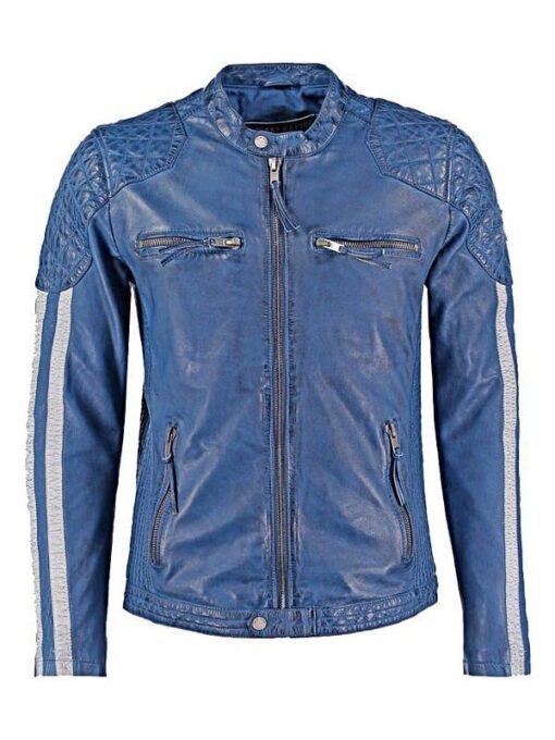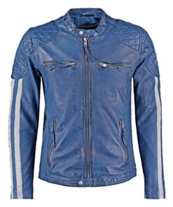 Men’s Cafe Racer Leather Biker Jacket With White Stripes