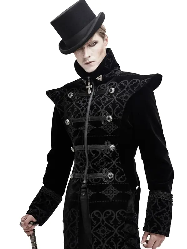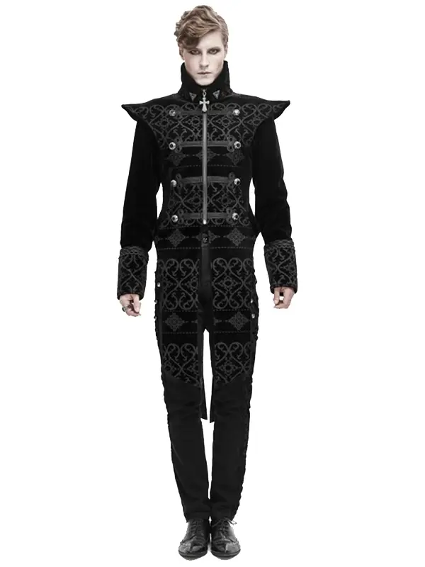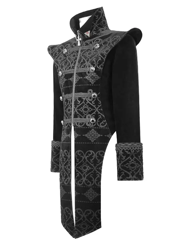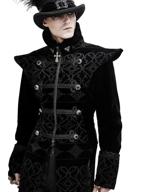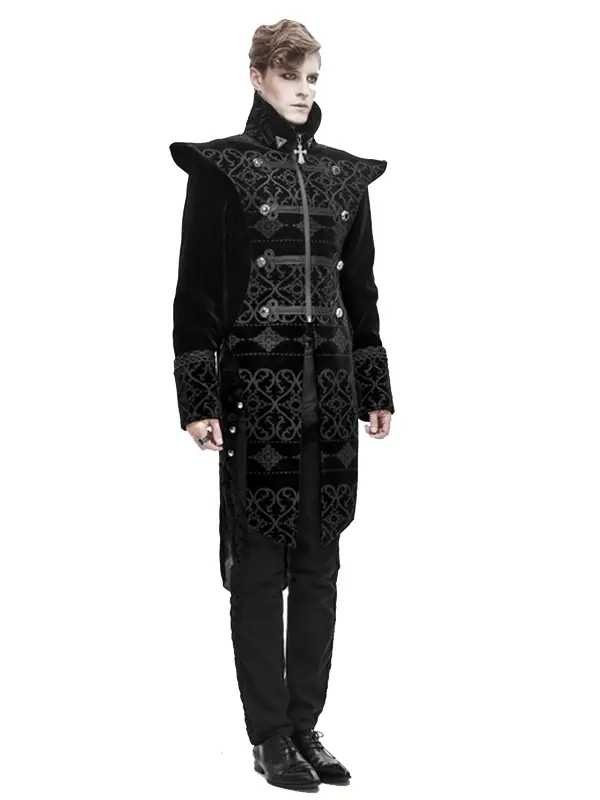men’s coat DEVIL FASHION – Bodom Gothic Floral Velvet Coat With Slit
