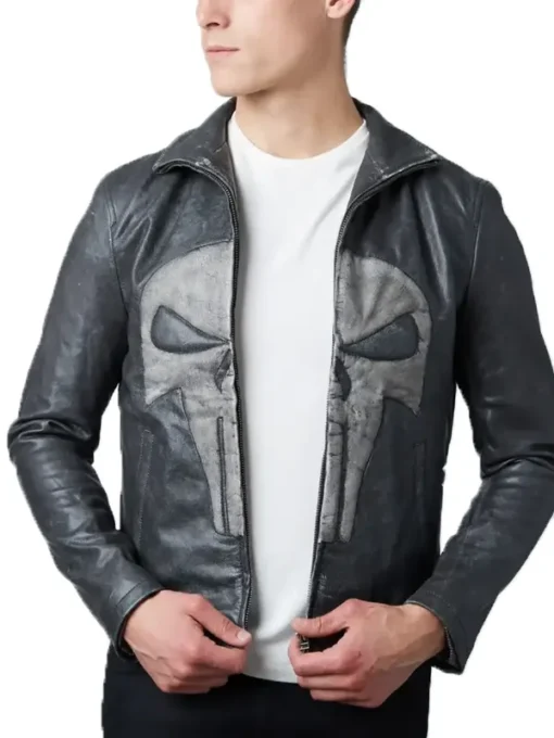 Mens Frank Castle Jacket Skull Embossed Leather Jacket