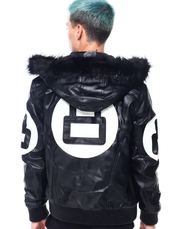 Shop Mens Real Leather Black 8 Ball Hooded Fur Jacket for a Bold Winter Look