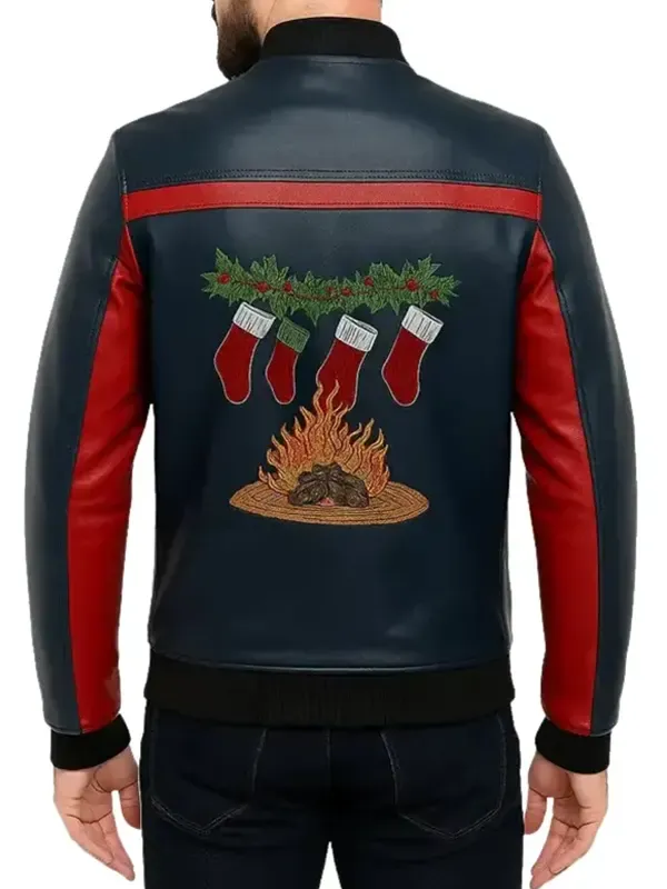 Mens Red and Blue Christmas Leather Jacket