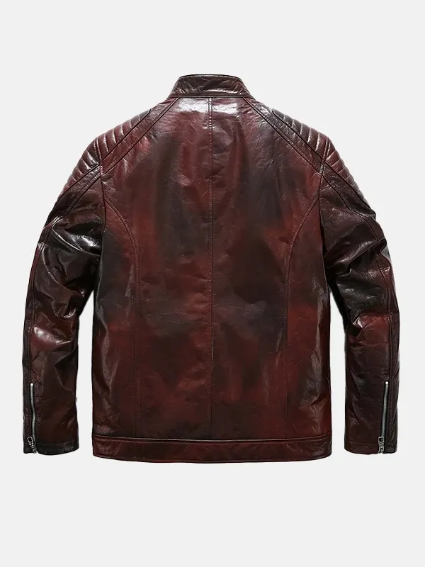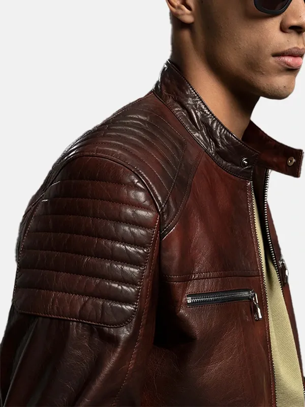 Men’s Reddish Brown Café Racer Leather Moto Jacket