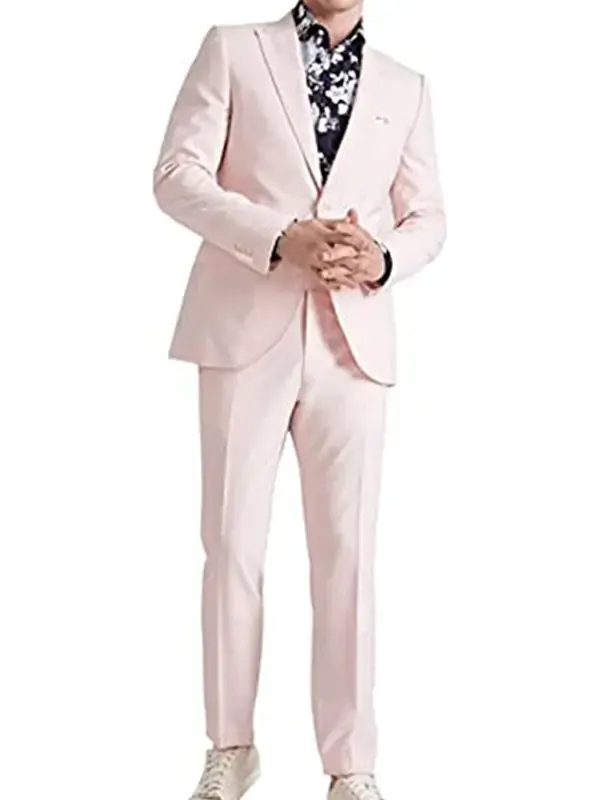 Mens Business Casual Peak Lapel 3 Piece Soft Pink Suit