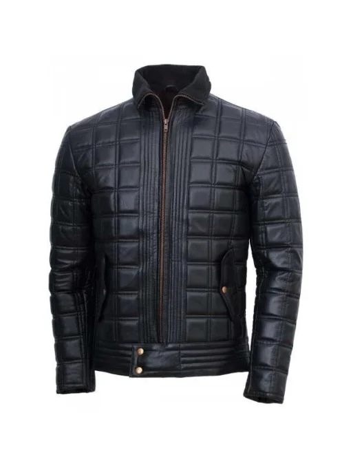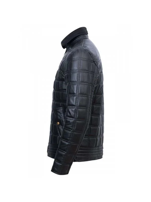 Trimmed Black Quilted Leather Jacket For Men’s