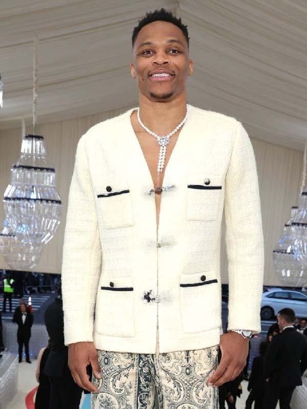Russell Westbrook Met Gala Red Carpet 2023 White Jute Coat