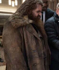 Artemis Fowl Josh Gad Distressed Brown Shearling Leather Coat