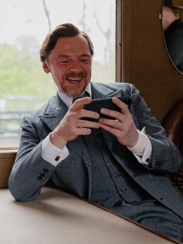 Simon Pegg Nandor Fodor And The Talking Mongoose 2023 Grey Blazer Coat