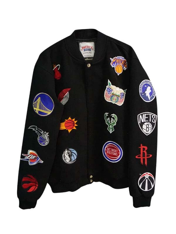 Crafted from top-quality materials, this jacket offers both durability and comfort, whether you’re at a game or out and about. The highlight is the collection of NBA team patches, each one symbolizing the deep history and exciting spirit of professional basketball. These patches aren’t just for decoration; they are powerful symbols that recall great games, iconic players, and unforgettable championships.