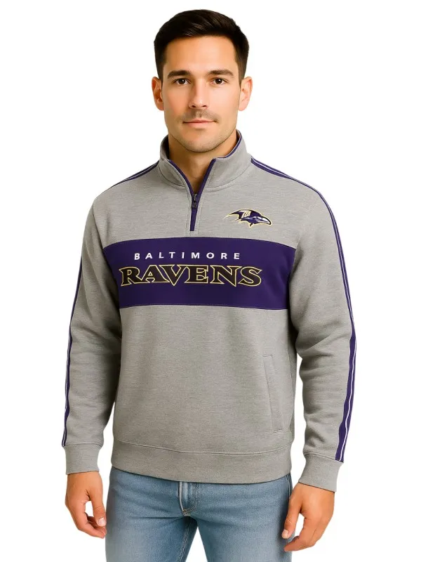 Baltimore Ravens Men NFL Grey Pullover Jacket