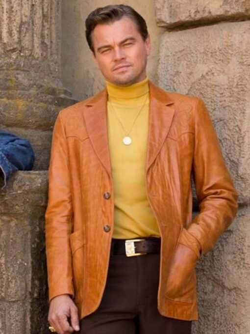 Real leather designation makes this Leonardo DiCaprio Once Upon a Time in Hollywood Brown Leather Jacket exterior strongest for longer use. There is also comes in beautiful orange-brown color to make you shine during the daytime and it is a highly unique texture for a jacket like this.