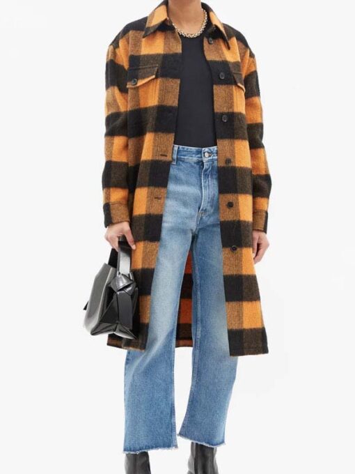 Crafted from sturdy wool fabric and featuring a cozy viscose inner lining, the Only Murders in the Building Mabel Checkered Coat is suitable for various weather conditions and can be effortlessly worn throughout the year. Its design includes a classic turn-down collar and a buttoned front, providing an extra boost of self-assuredness as you step out into the world.